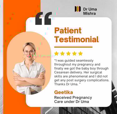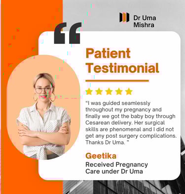 Expecting mothers tagging her as the best Gynecologist near me or Gynecologist in Noida were asked why Dr Uma Mishra is her choice. Among various answers, they emphasized that for Women's health care in Noida, Dr Uma provides all services under one clinic and with root cause based and personalized Gynecological care she is liked by young women. Expecting mother rush her just after testing positive for pregnancy test so that they receive the optimum Obstetrics care.