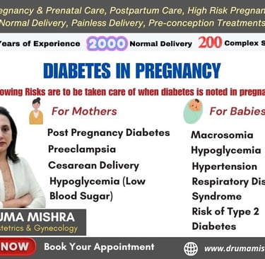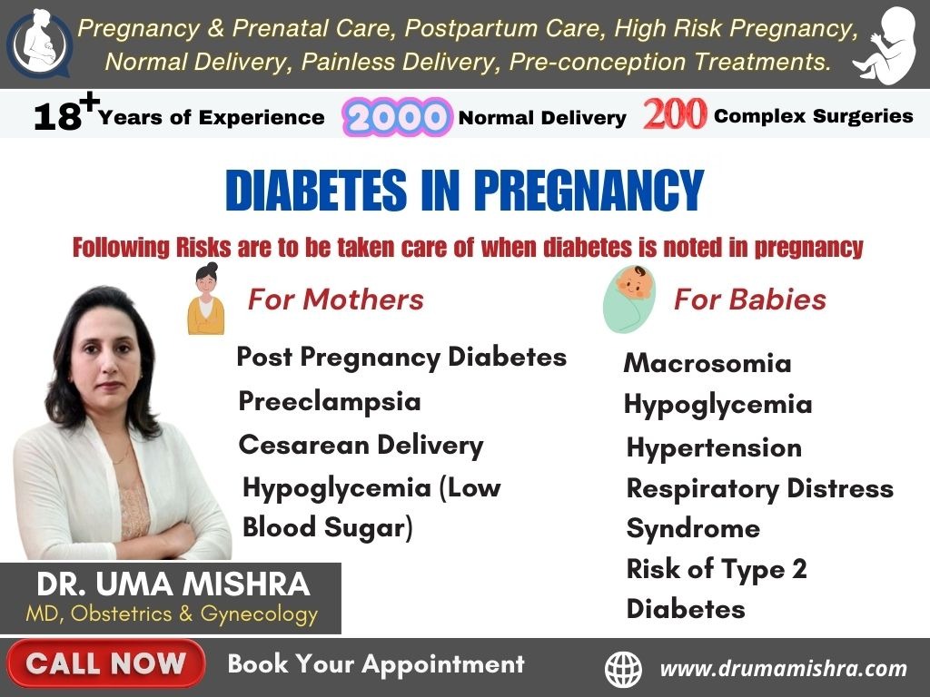 Diabetes during pregnancy, known as gestational diabetes, poses certain risks to both the mother and the baby. Dr Uma Mishra, one of the best Gynecologists in India explains some associated risks and recommendations for monitoring: